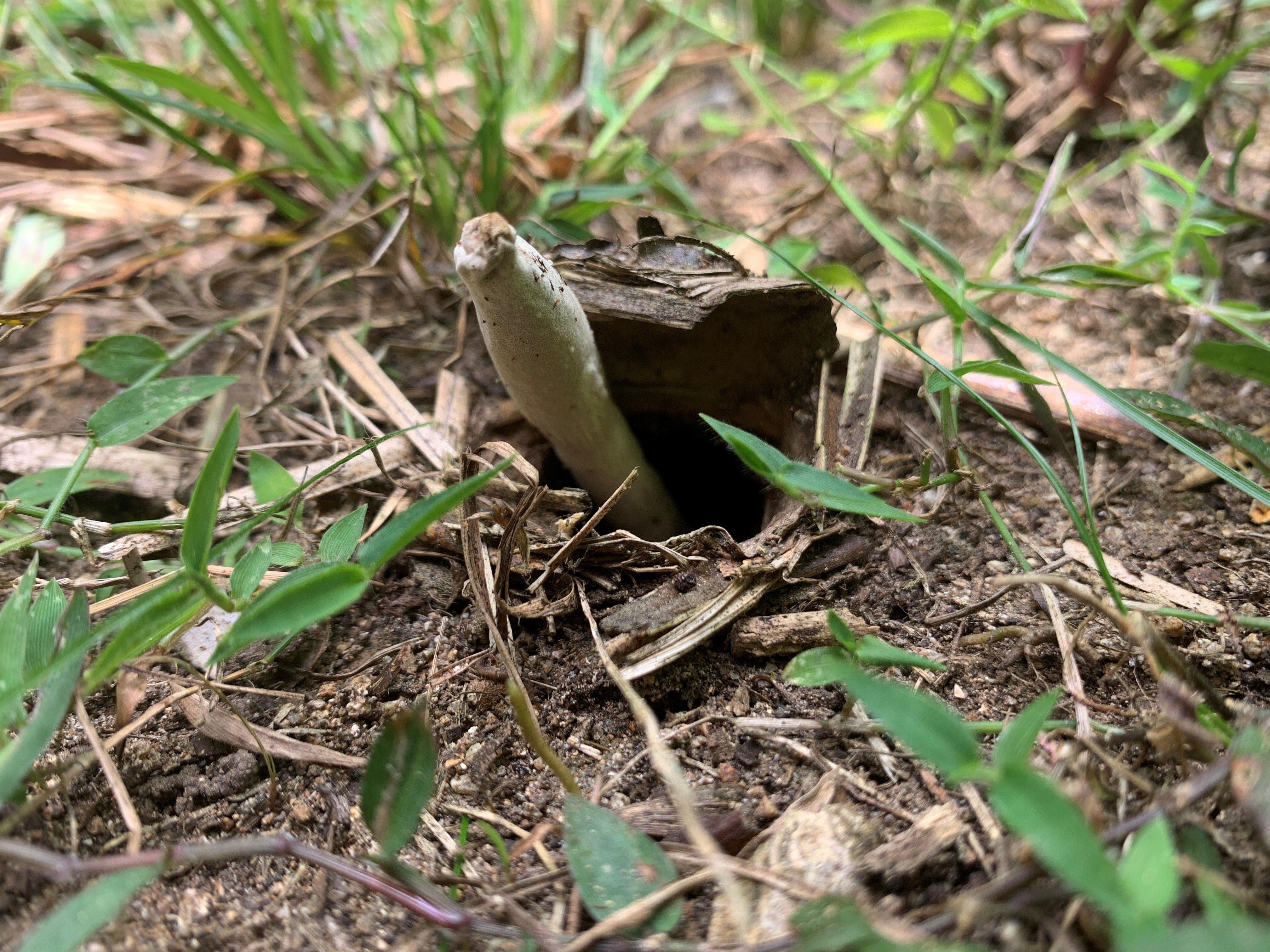 During my regular morning walk through the Conservation Area on my property I had noted a trapdoor spider burrow in the middle of the path. This was significant as I had not seen any other trapdoor burrows of this type on the property and the area I found it in had previously been cleared of vegetation when the property was a dairy farm.