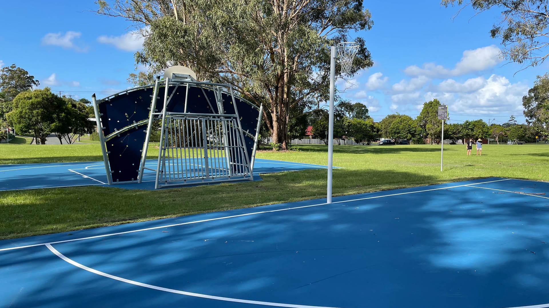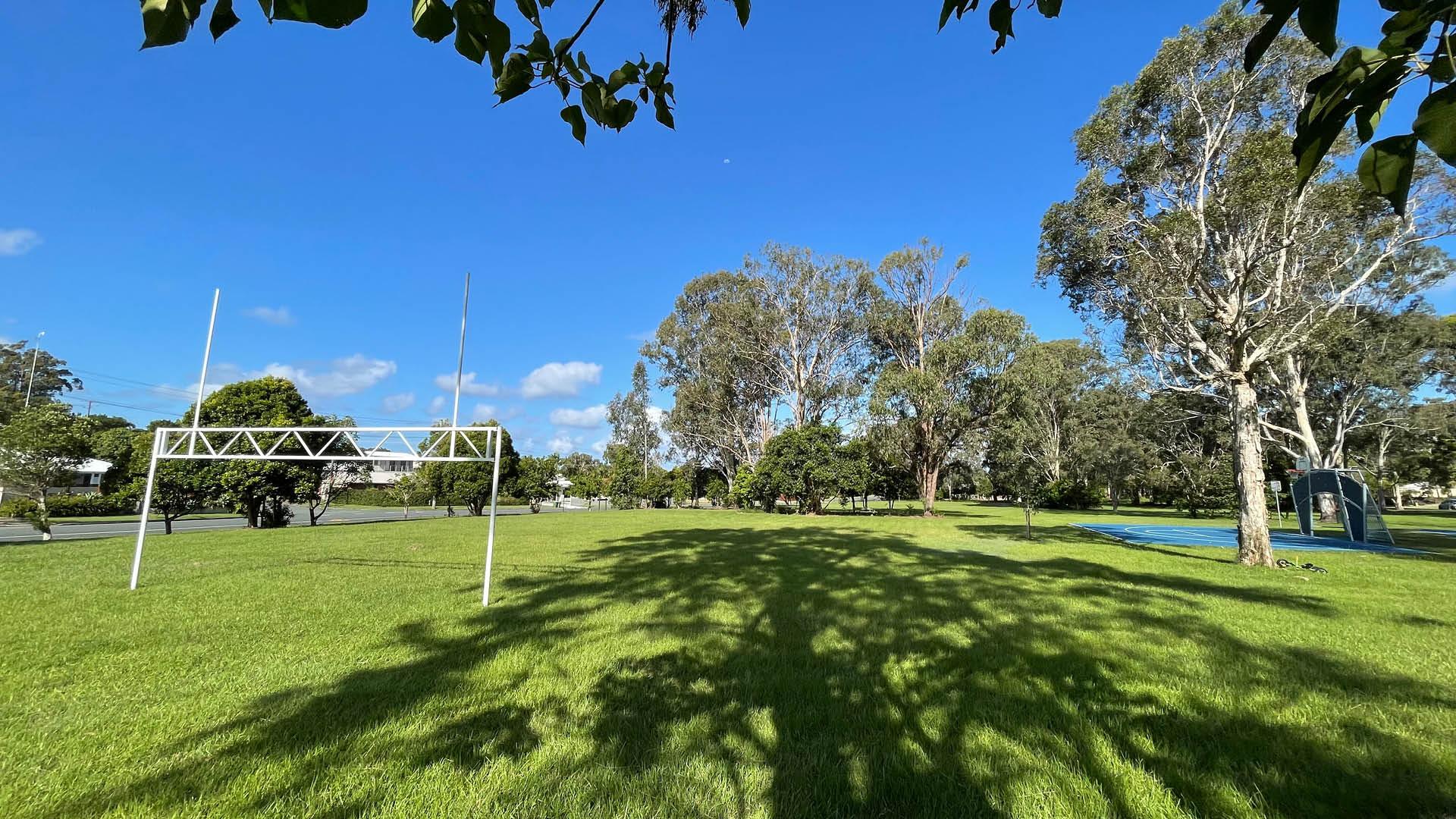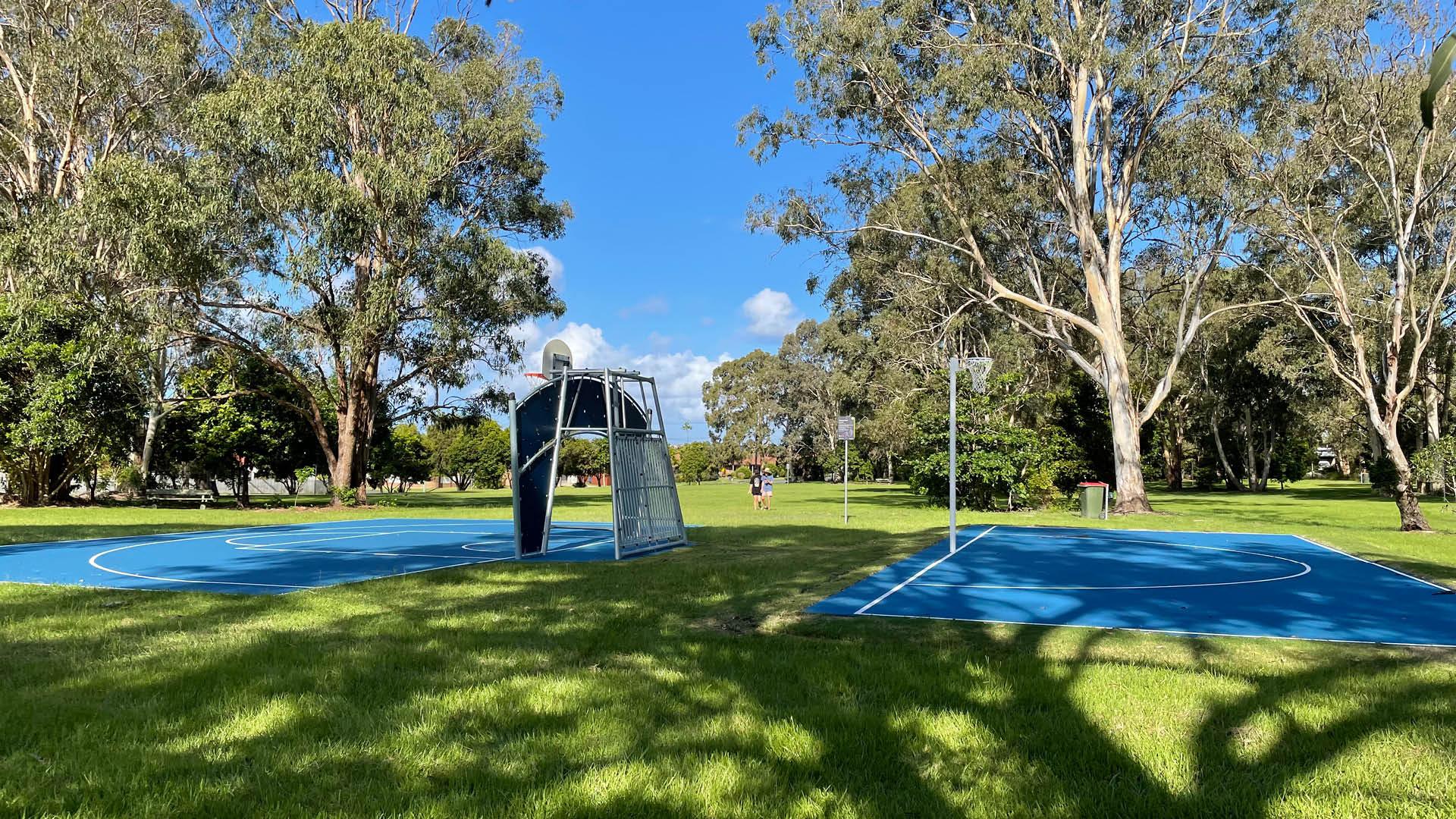 The half basketball and half netball courts, multi-goalpost (rugby, soccer, AFL, etc) and cricket pitch all nicely spaced apart, provide fun for both teenagers and adults.