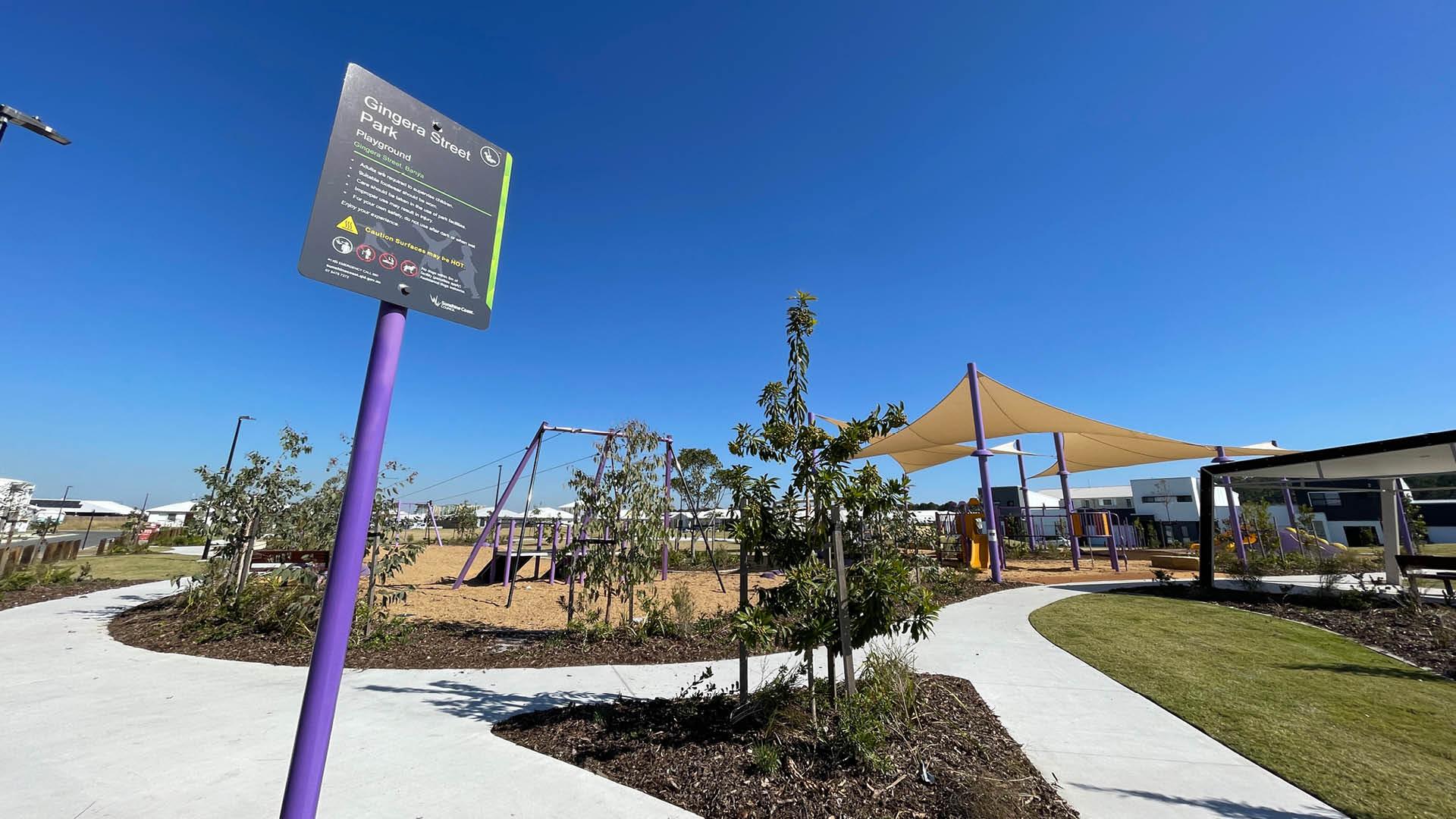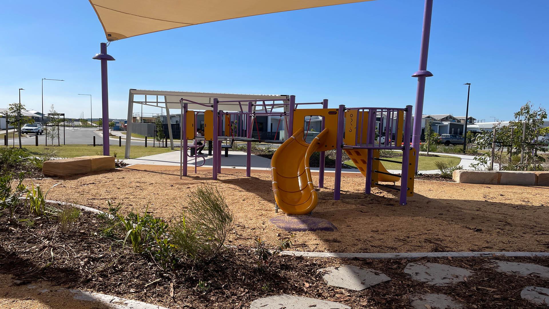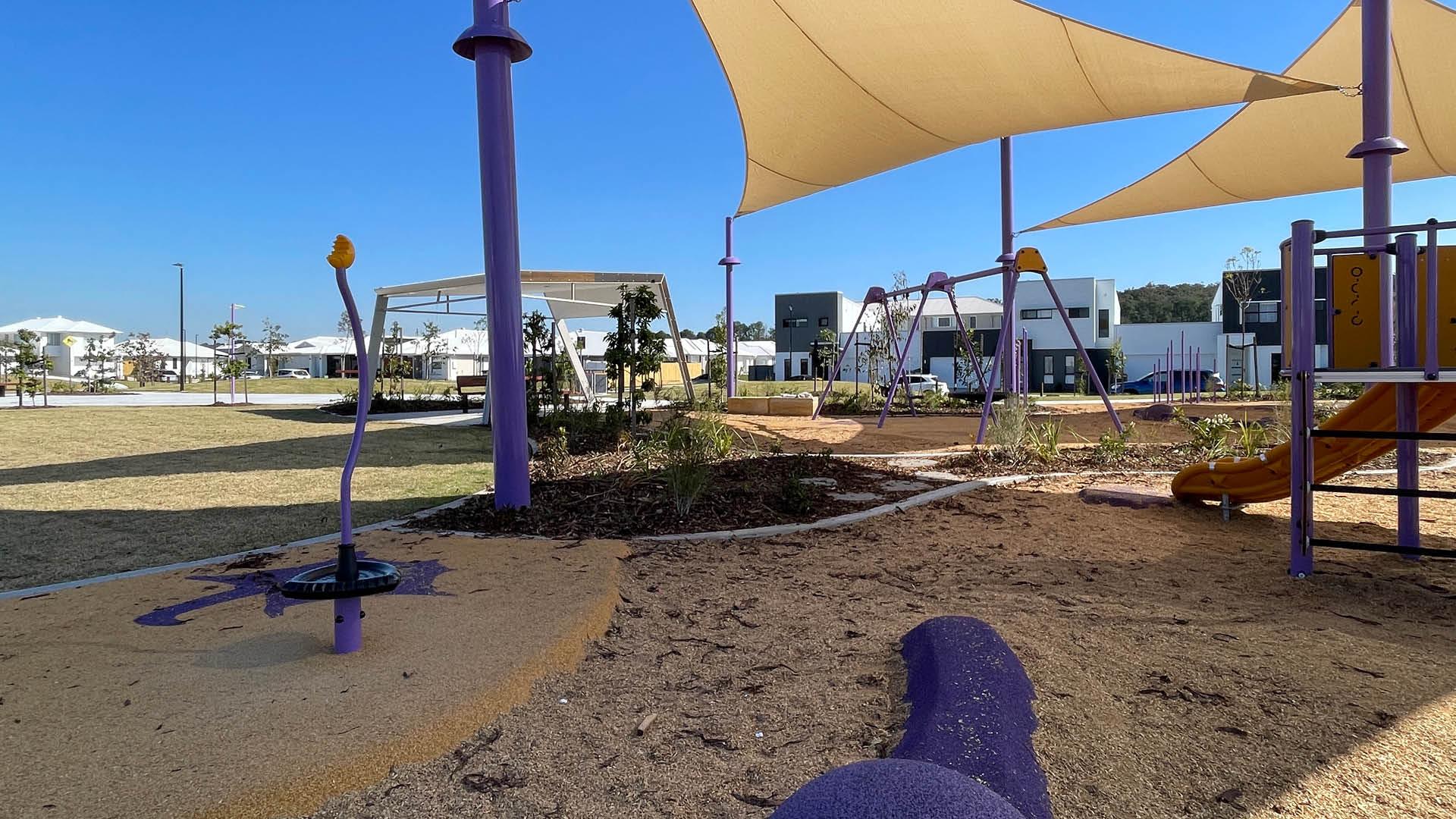 This park provides a large playground under shade sails, a flying fox, kids bike path, shelters with picnic facilities, large open space areas for kick and throw activities.