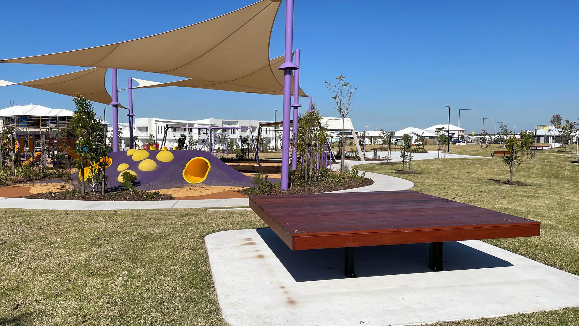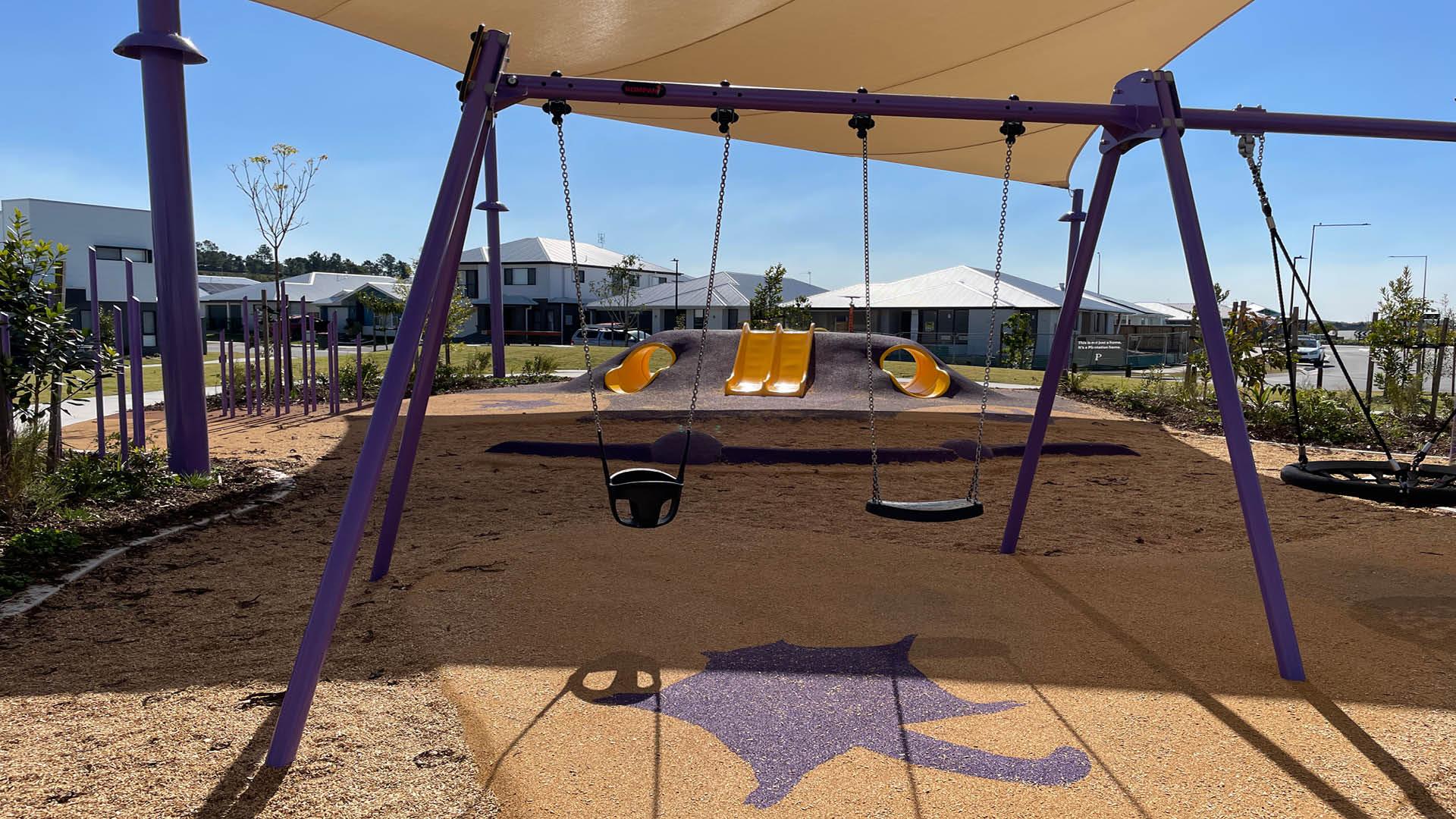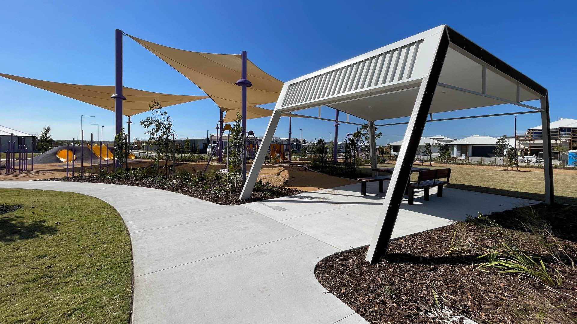 This park provides a large playground under shade sails, a flying fox, kids bike path, shelters with picnic facilities, large open space areas for kick and throw activities.