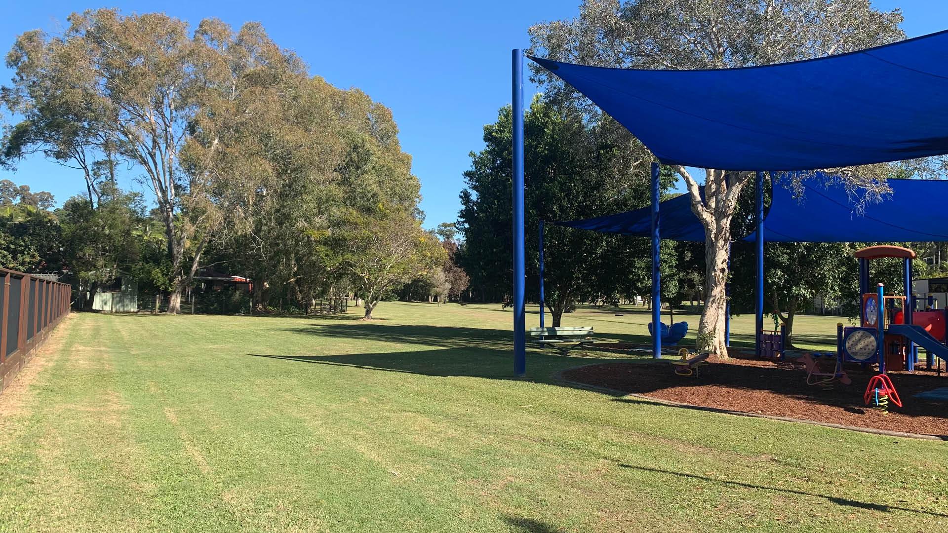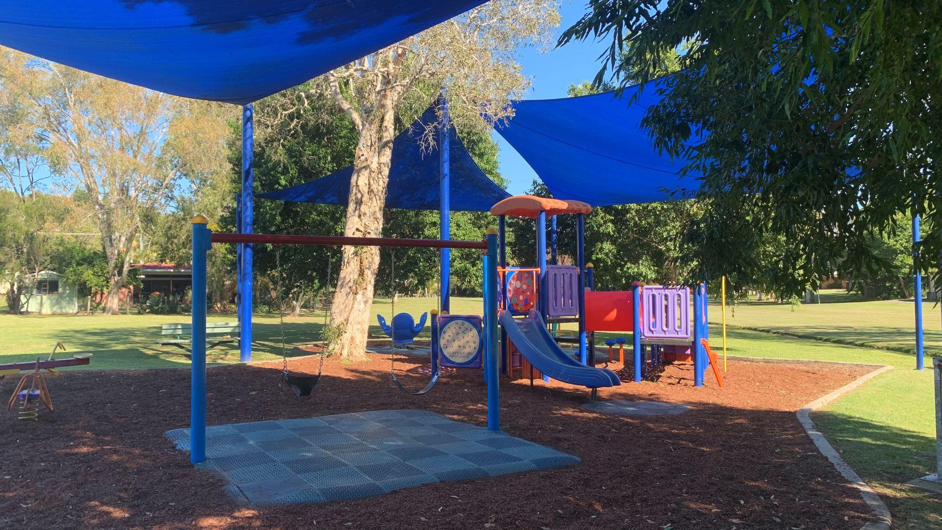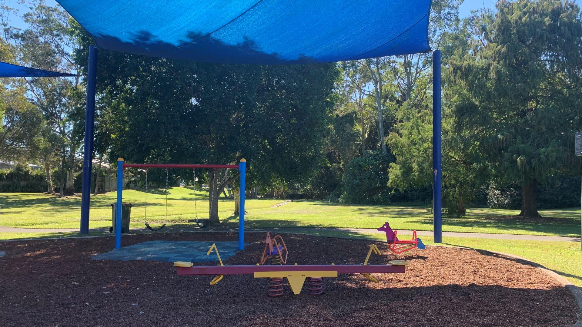 The park provides a large open green space area for kick and throw activities. It also provides a playground under shade sails and some natural shade throughout the park