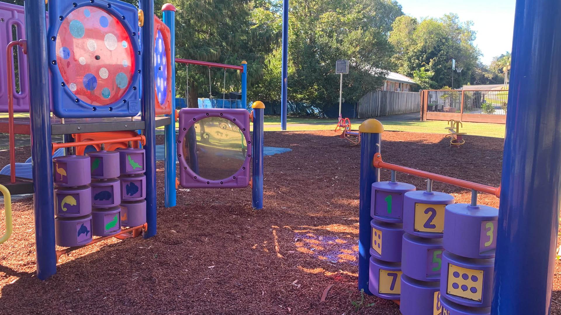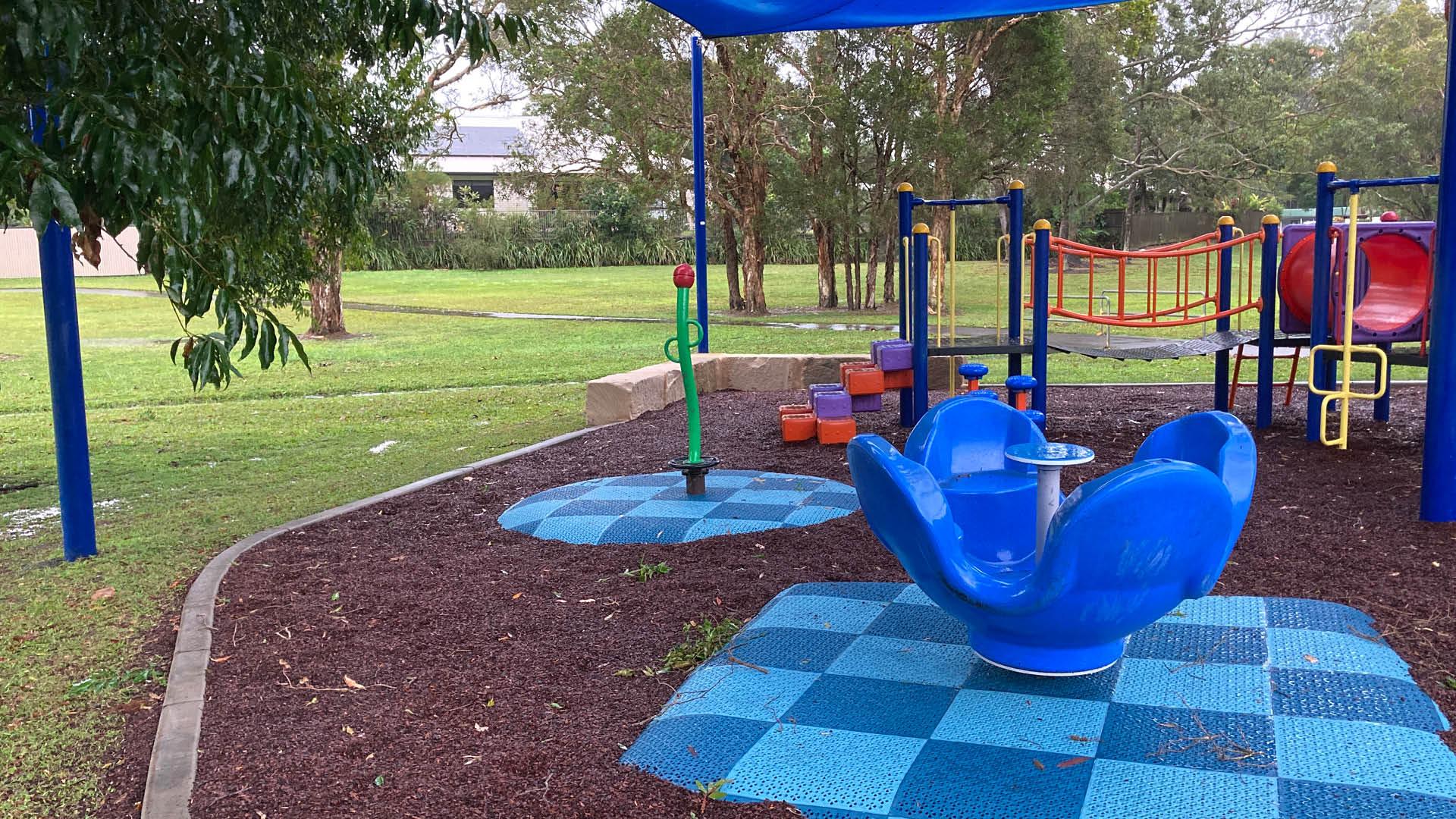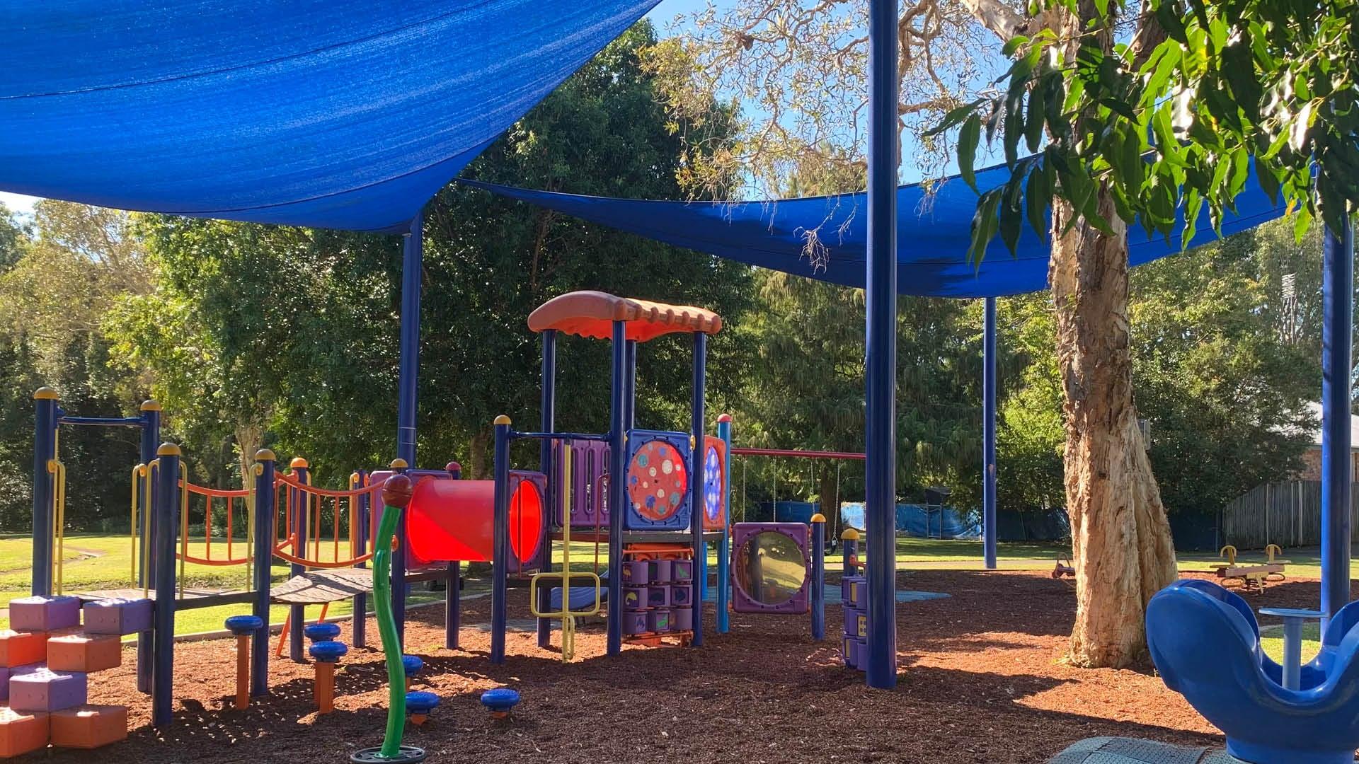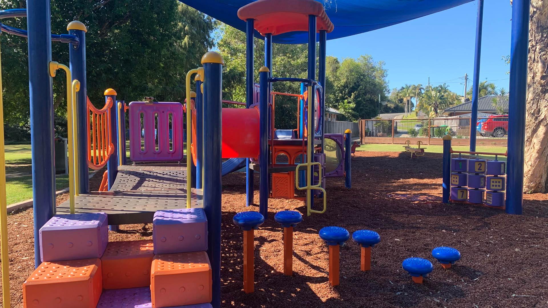 The park provides a large open green space area for kick and throw activities. It also provides a playground under shade sails and some natural shade throughout the park