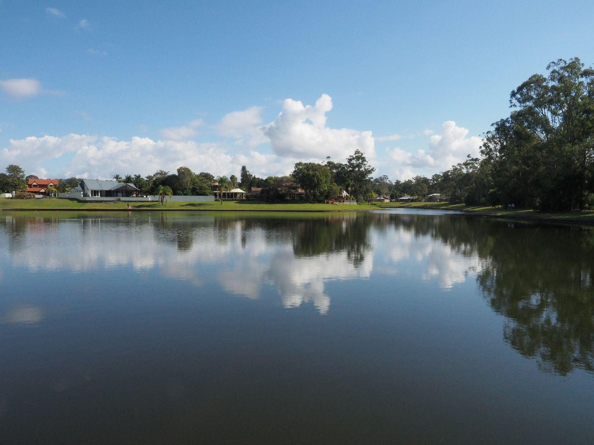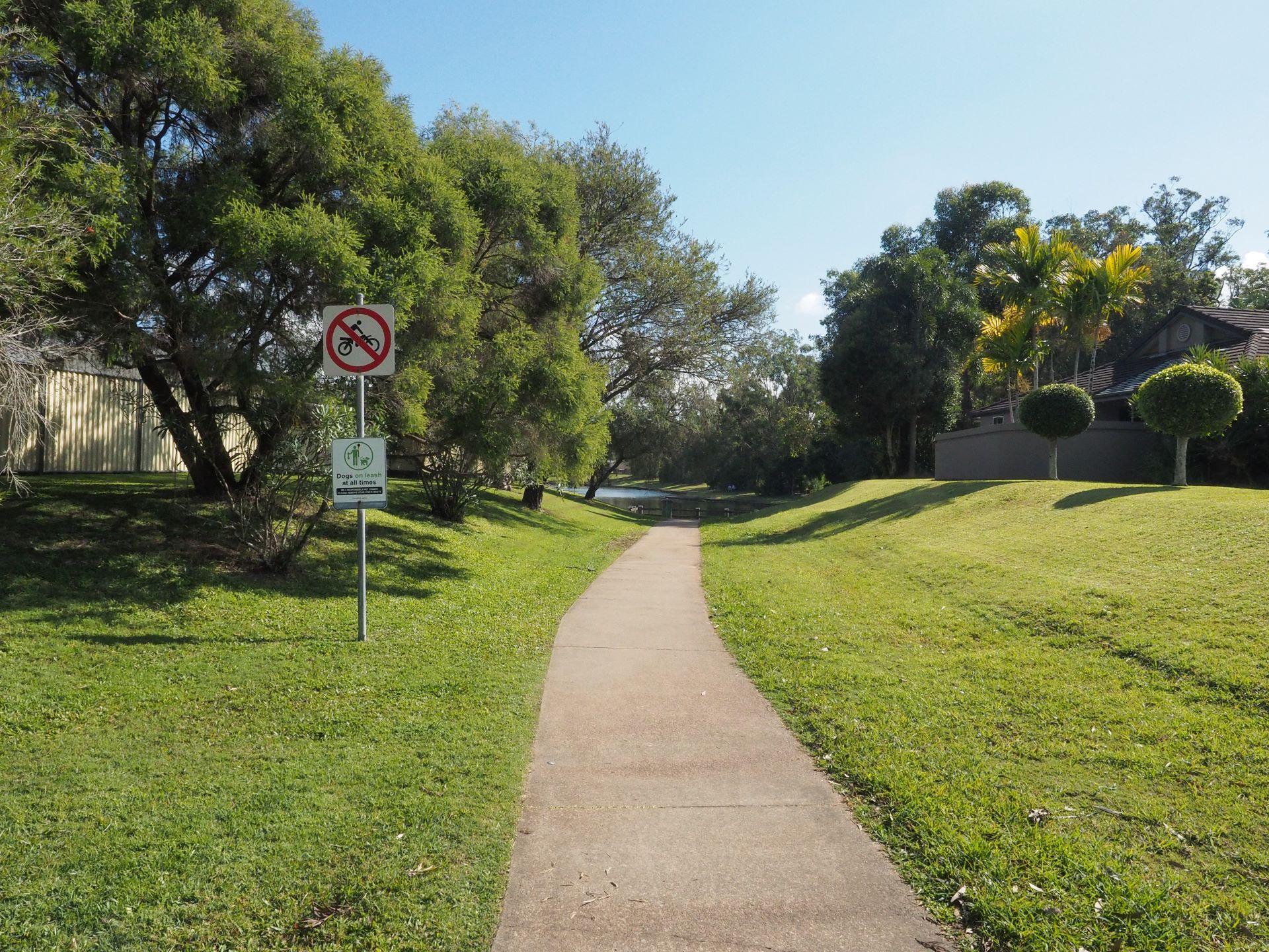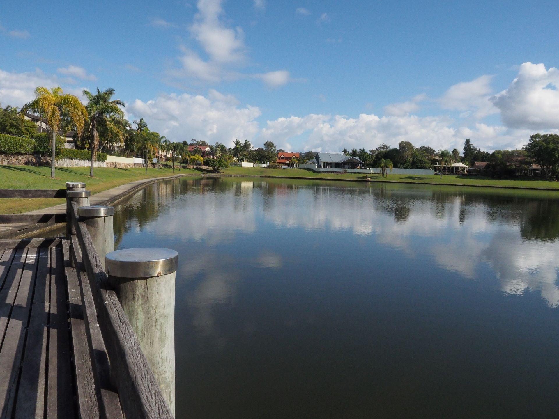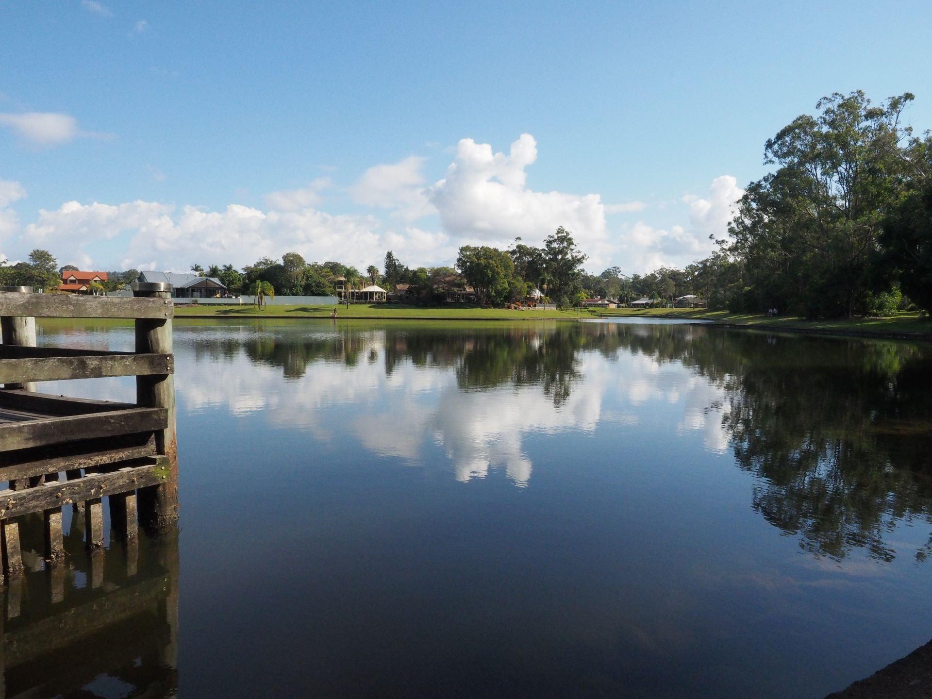 This parkland completely surrounds the 2.2 hectare lake which lies between Kapilano Crescent, Saratoga Drive and Karawatha Drive. (Photographs shown below are taken from the entrance at Saratoga Drive). The 800 meter long pathway travels along the edge of the lake with seating and natural shade provided at various locations along the way. Dogs must be on a leash at all times