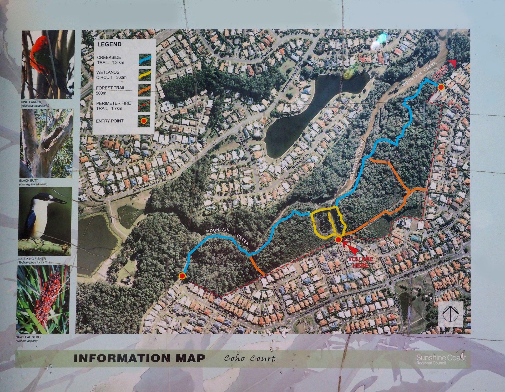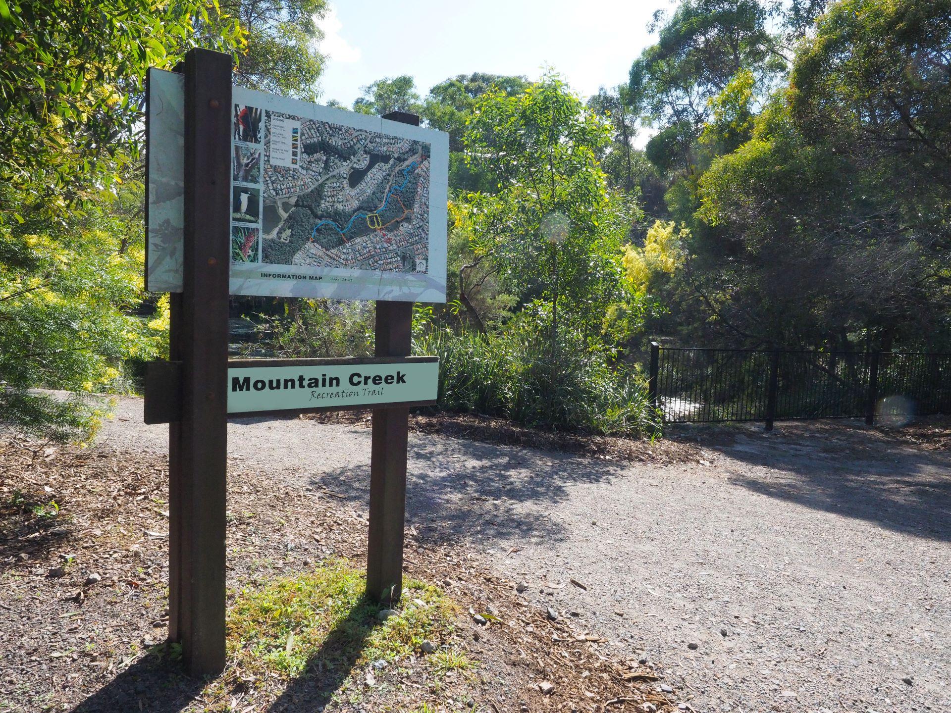This reserve protects large walum and creekside vegetation. It provides an extensive network of share trails that lead along Mountain Creek