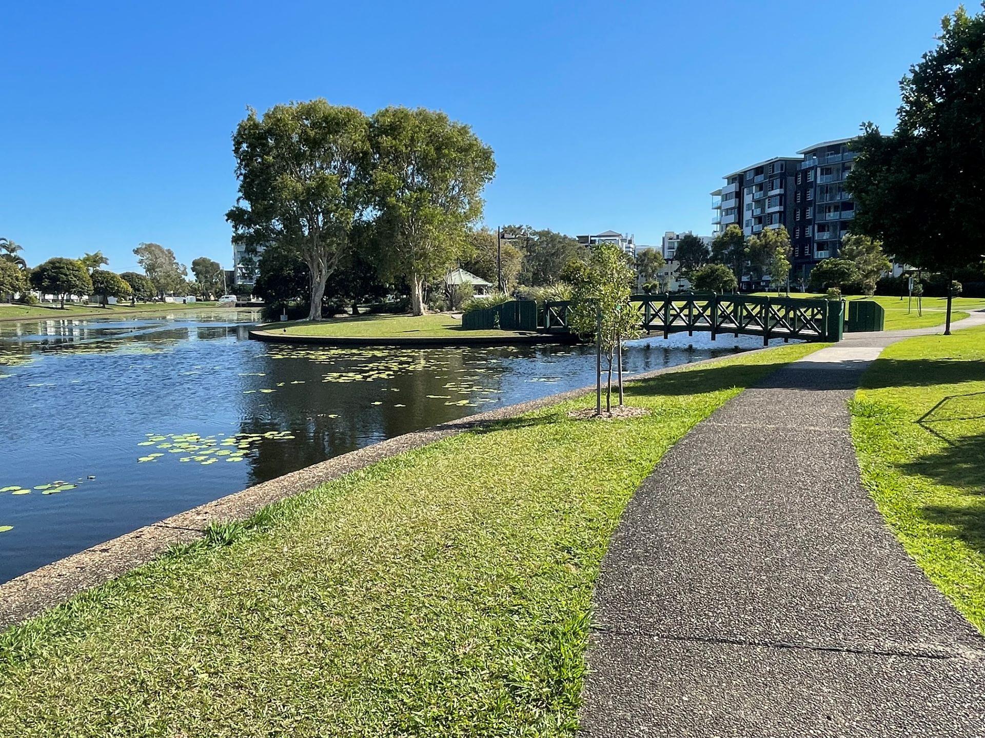 Nelson Park at Alexandra Headland has a network of shaded pathways surrounding the lake, which is teaming with wildlife. The playground is fully fenced and has many accessible play opportunities.