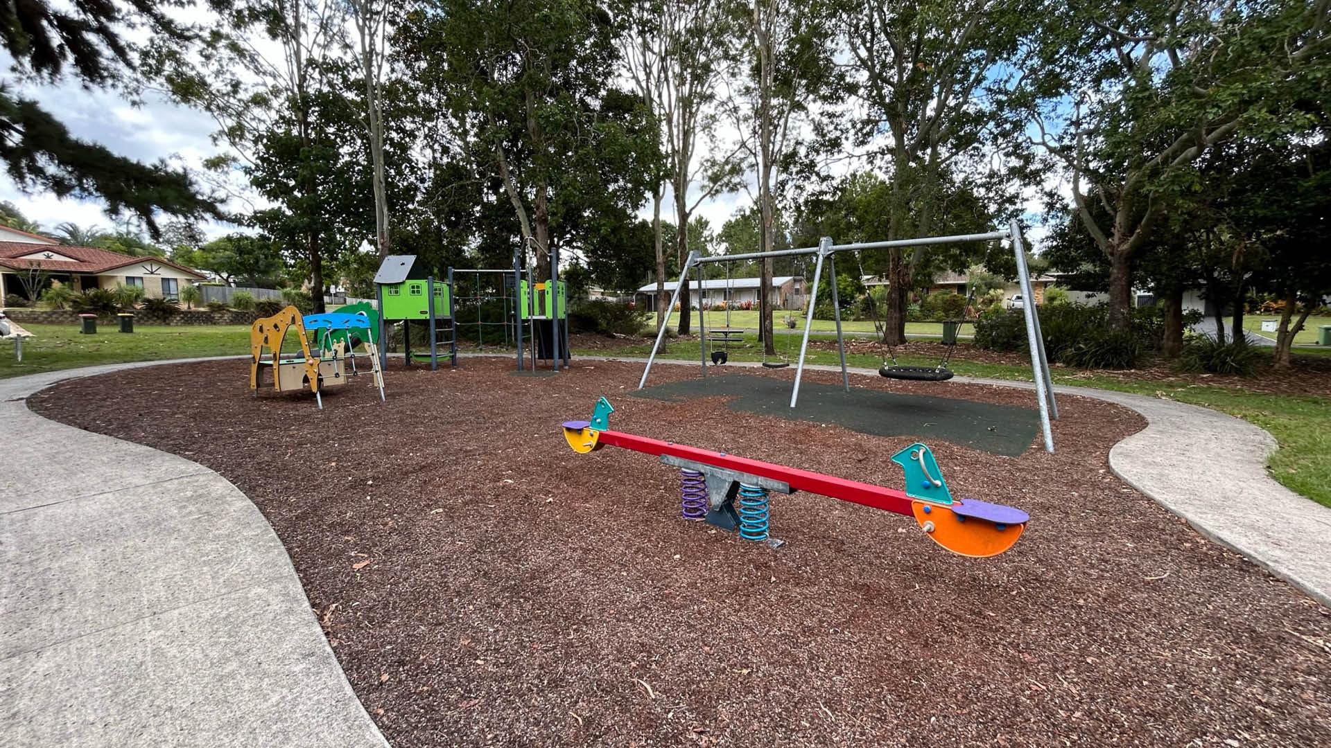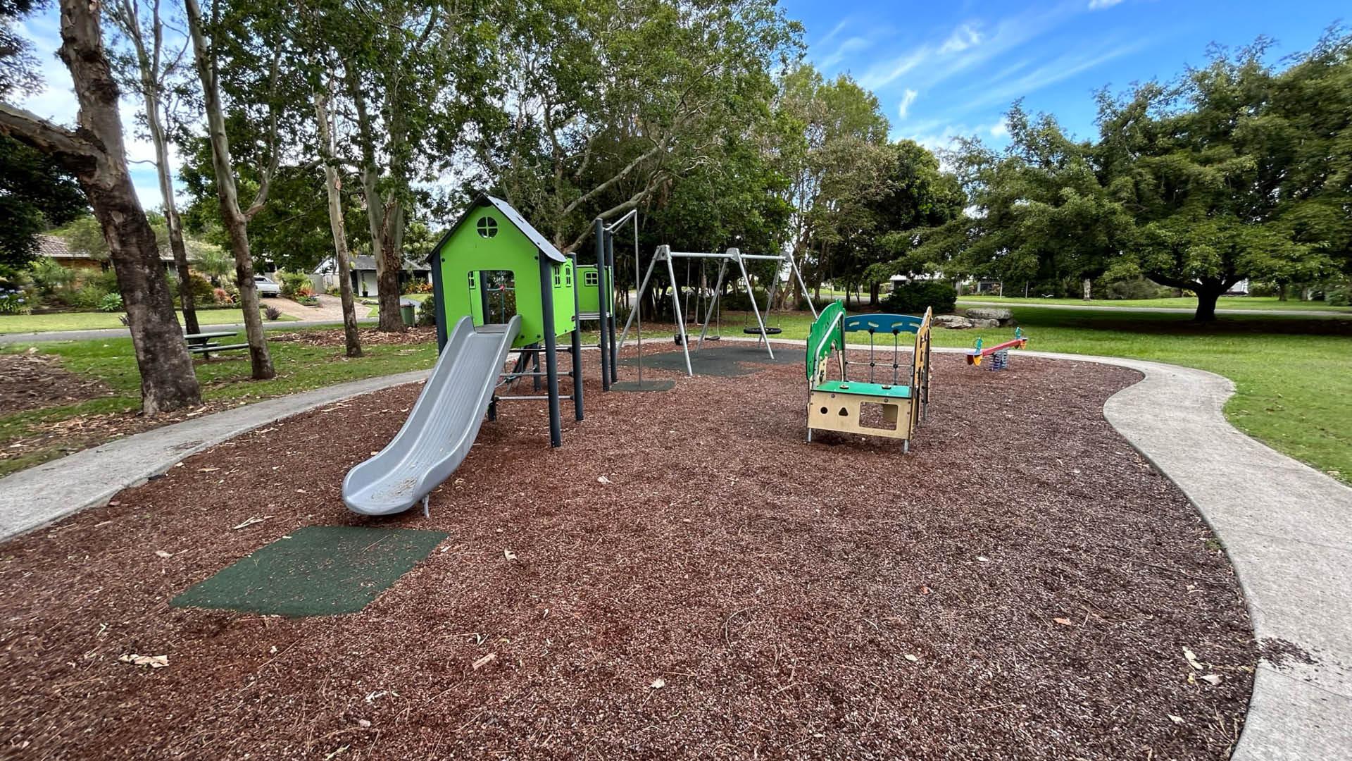 This park provides a small playground with plenty of natural shade. It also has large open space areas for kick and throw activities.