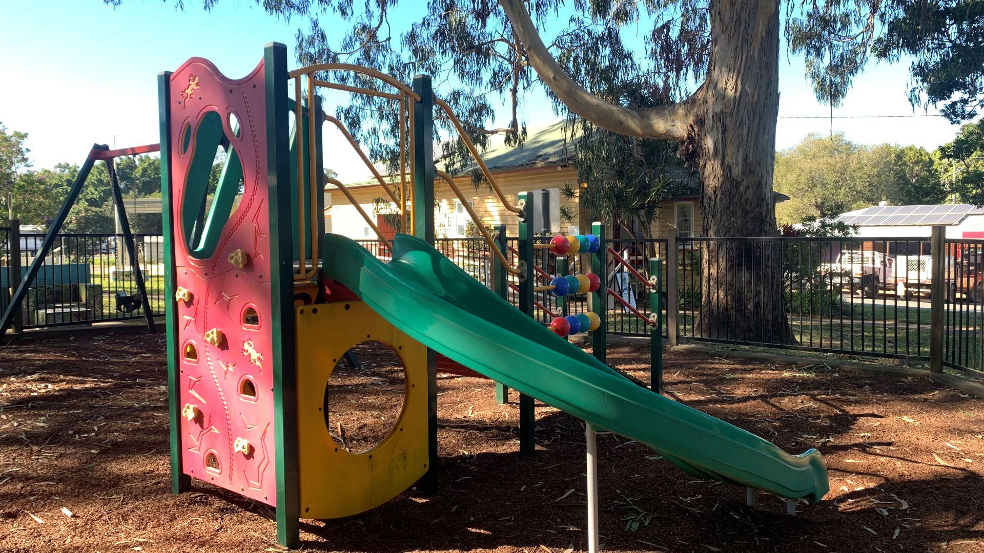 This little park provides a fully fenced playground under natural shade and a picnic table outside the fenced area. You'll also find a public amenities that is also wheelchair friendly.