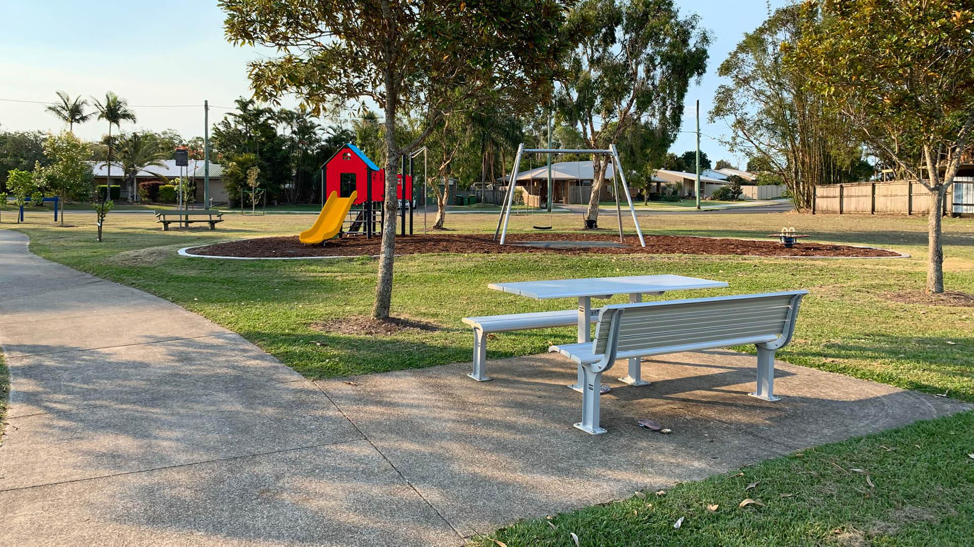 Chantilly Park provides a connecting pedestrian pathway through the park. A small playground is located in the centre of the park with a picnic table. There also a large open space grassed area for kick and throw activities and some natural shade through out the park.