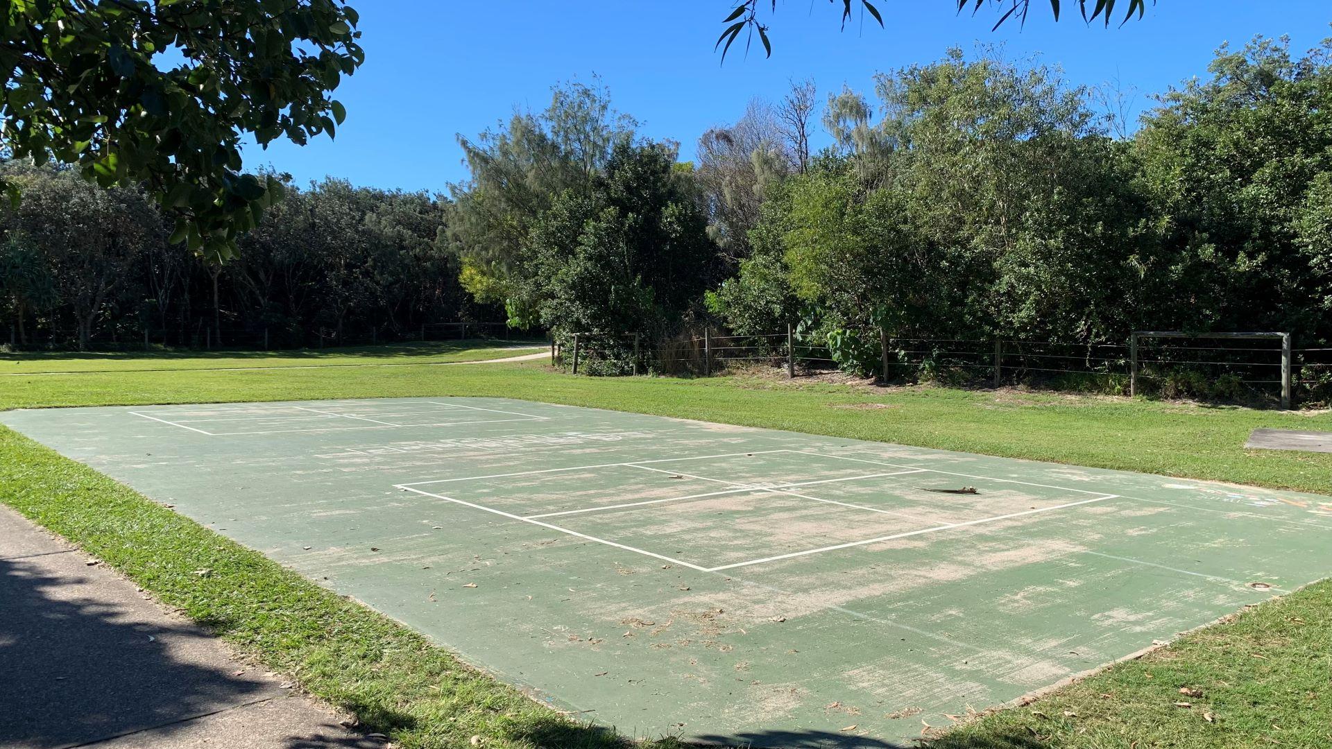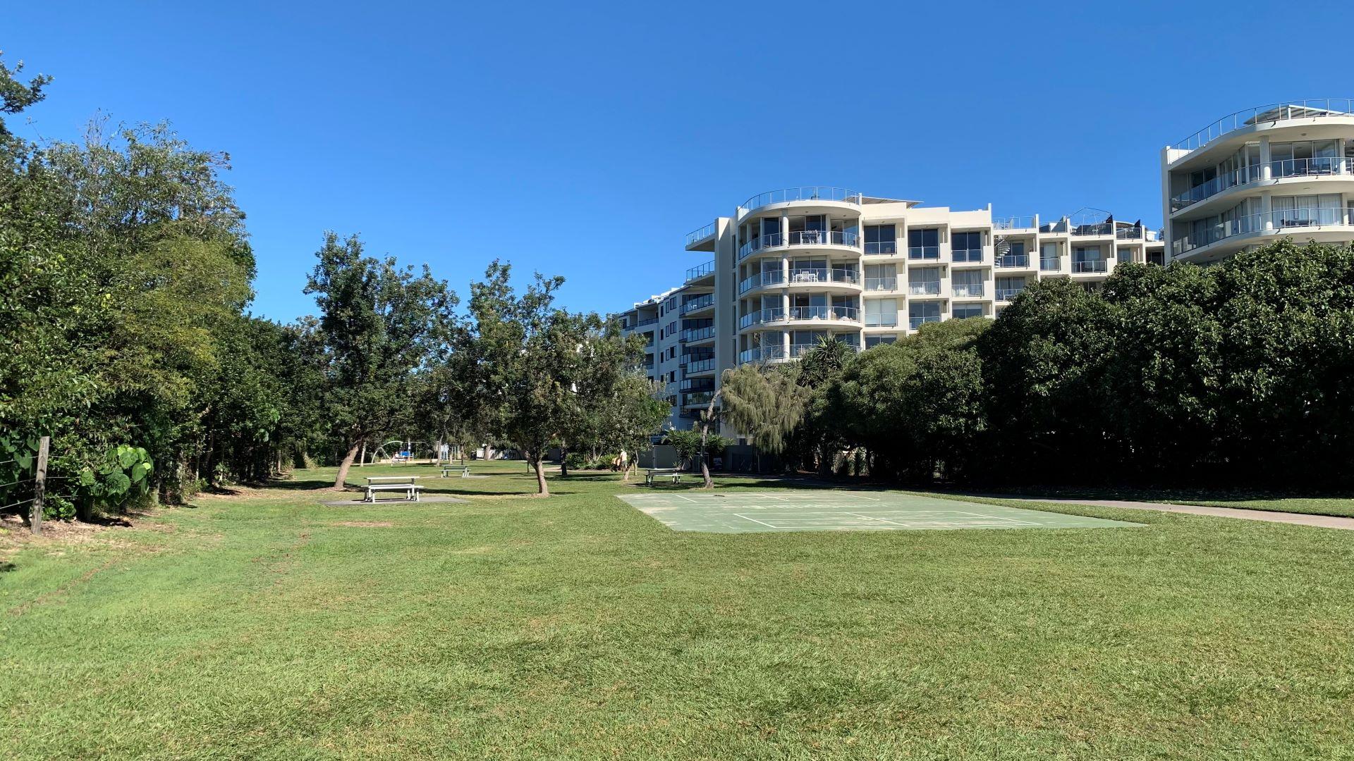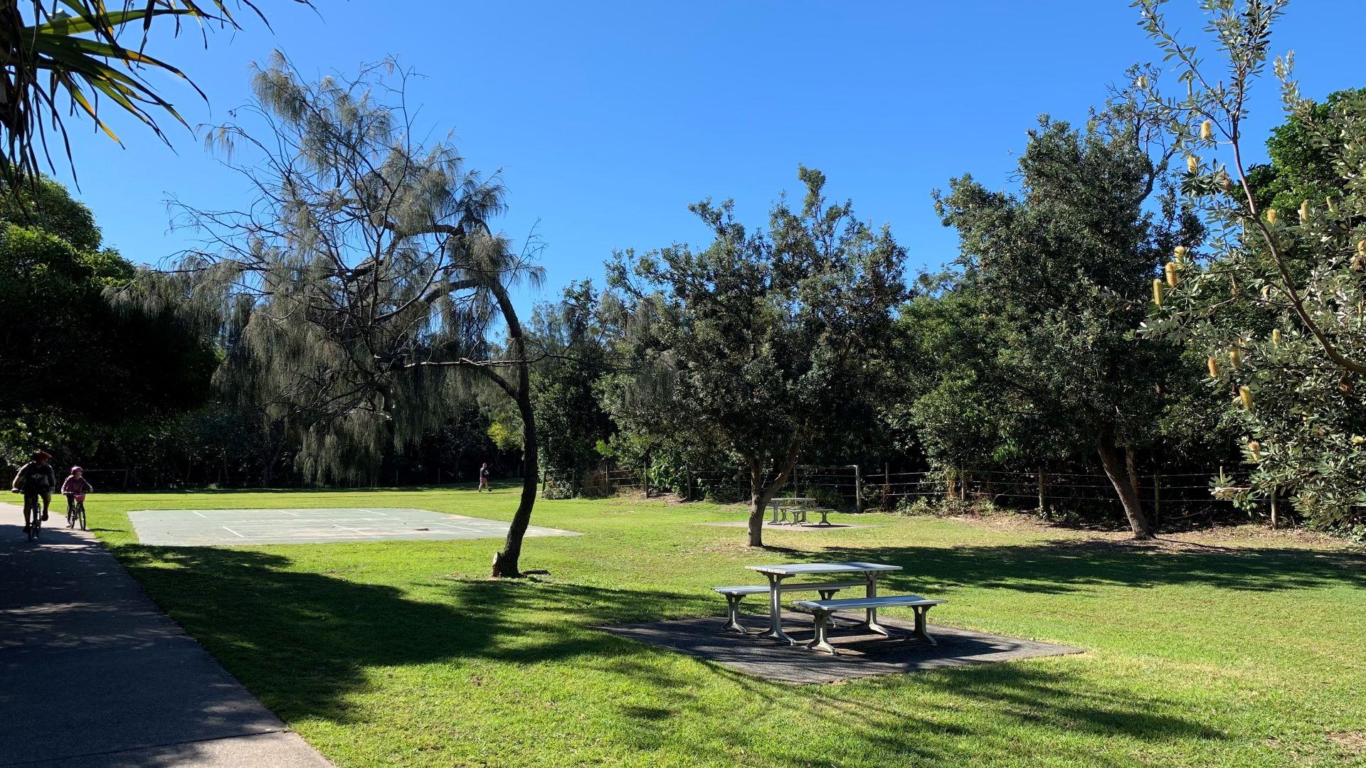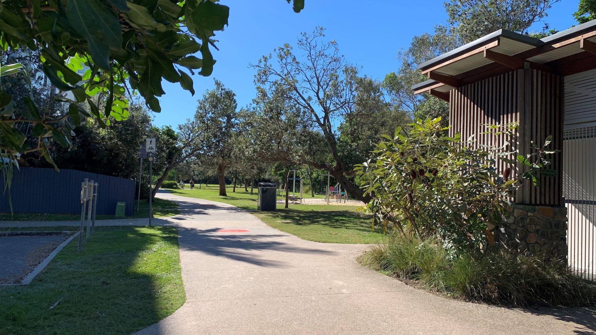 The park provides a playground with some natural shade, sandstone block seating, connecting pathways, two handball courts, beach access and access to public amenities